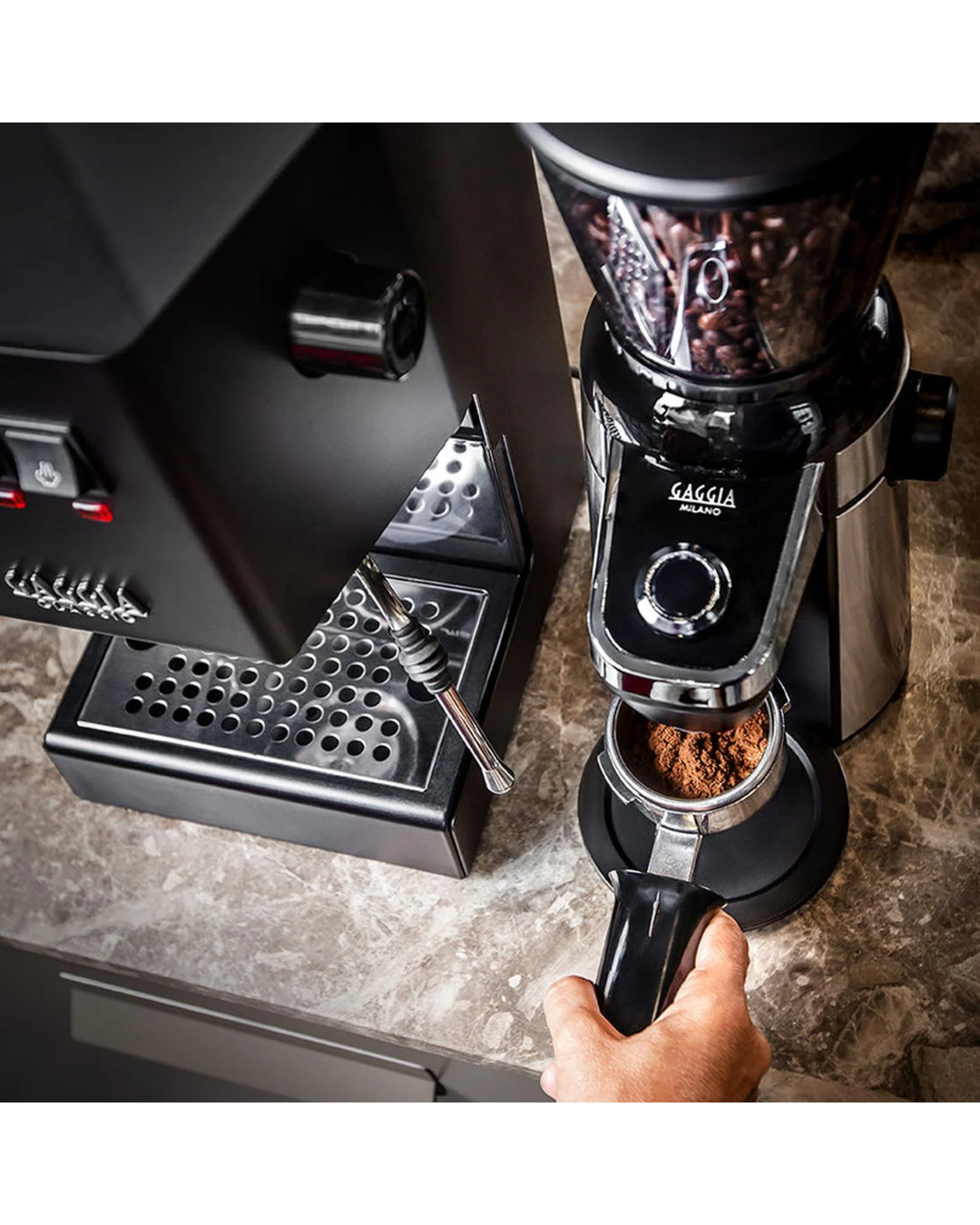 Versatilidad: utiliza el contenedor de café molido o muele directamente en tu portafiltro de espresso.